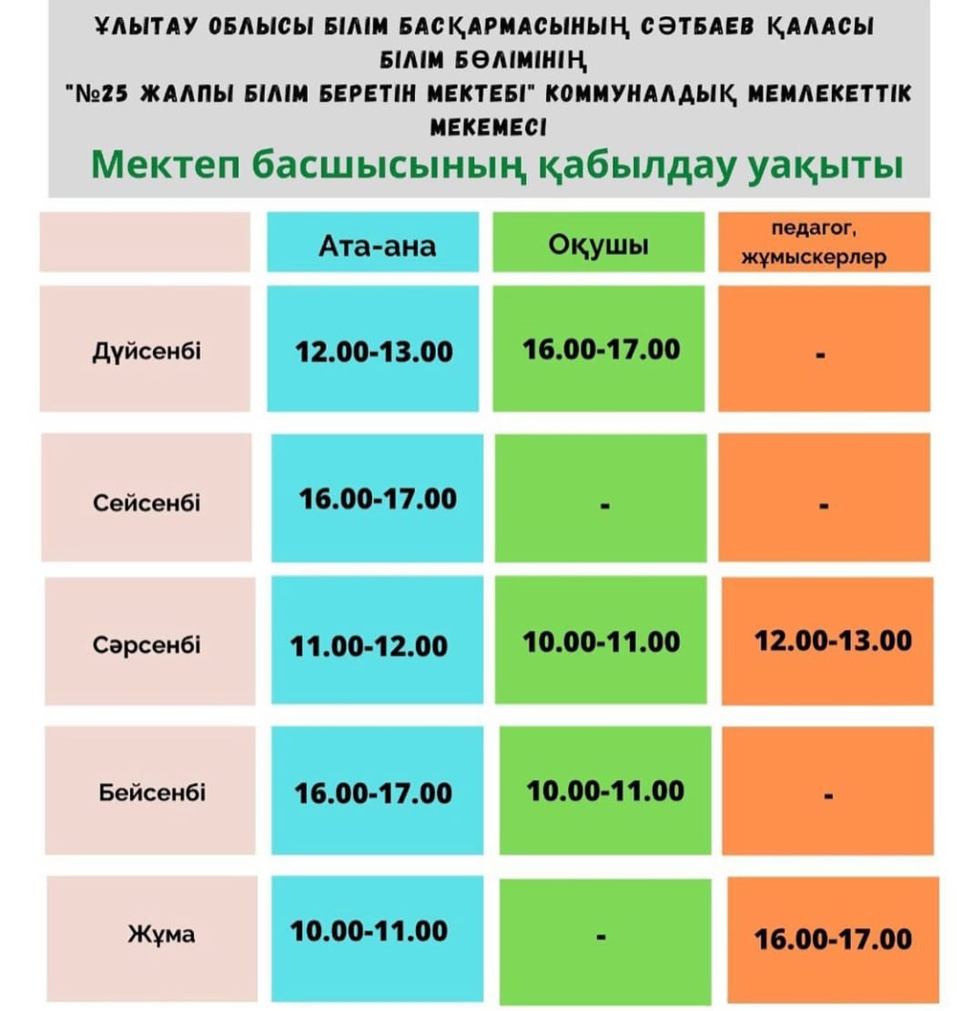 ҰЛЫТАУ ОБЛЫСЫ БІЛІМ БАСҚАРМАСЫНЫҢ СӘТБАЕВ ҚАЛАСЫ БІЛІМ БӨЛІМІНІҢ «№25 ЖАЛПЫ БІЛІМ БЕРЕТІН МЕКТЕБІ» КОММУНАЛДЫҚ МЕМЛЕКЕТТІК МЕКЕМЕСІ