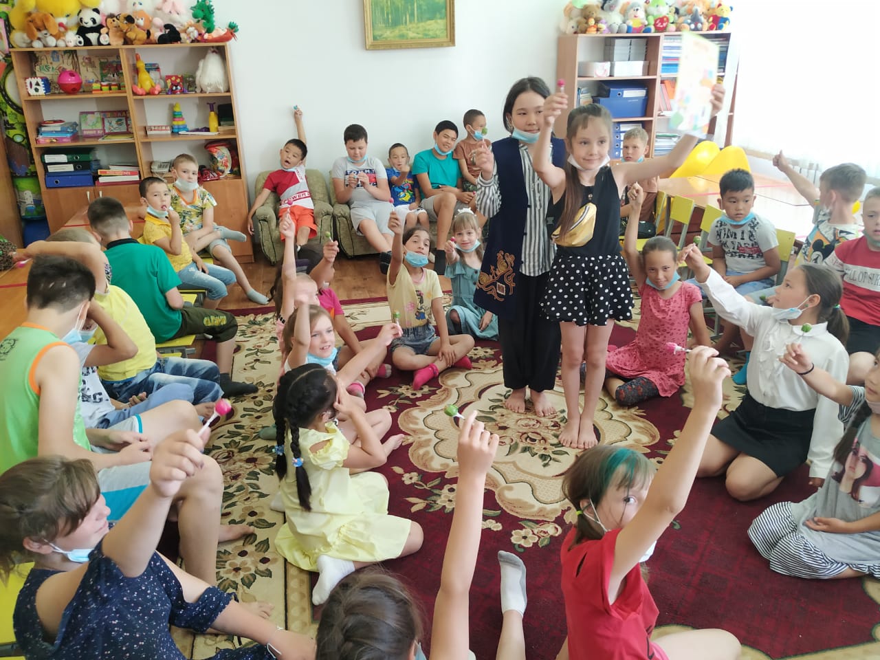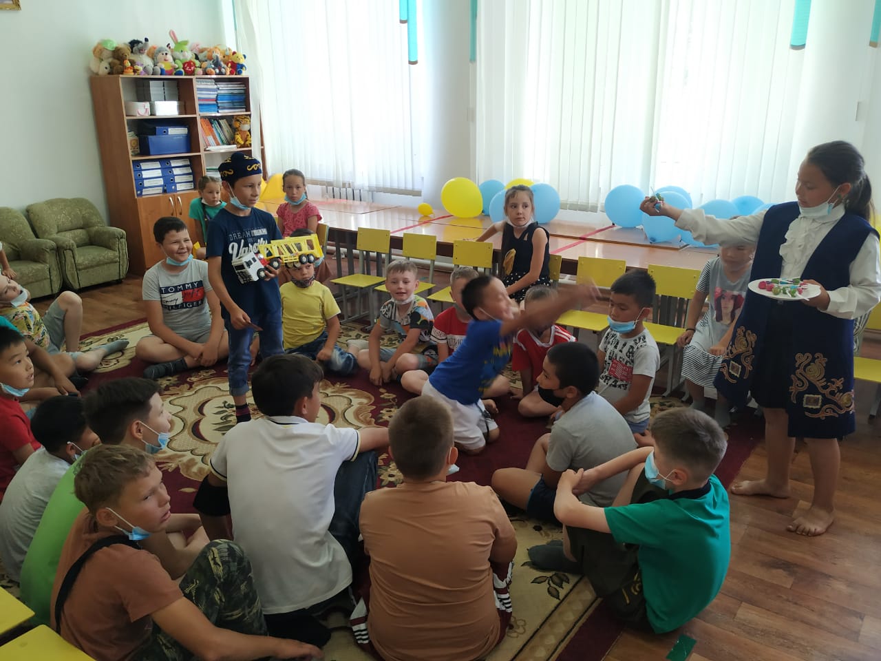 Бүгін балалар қазақтың салт-дәстүрлерімен танысты. Соның ішінде бесікке салу,қырқынан шығару, тұсау кесу, ұлттық ойындар, ұлттық тағам түрлері аясында сұрақтарға жауап берді. Түрлі ойындар ойнады,сурет салды. Балалар бүгінгі күнді қызықты және көңілді өткізді.